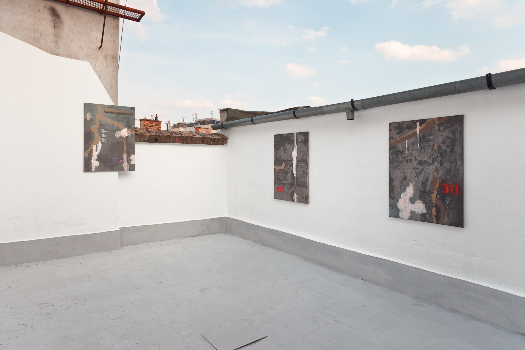 Fukui Yusuke’s new series, Hidden Numbers consists six paintings, which are pointing on different dates from history on abstract surfaces. The basic inspiration came from the wall textures of Tokyo underground during its renewal process at the beginning of 2017.