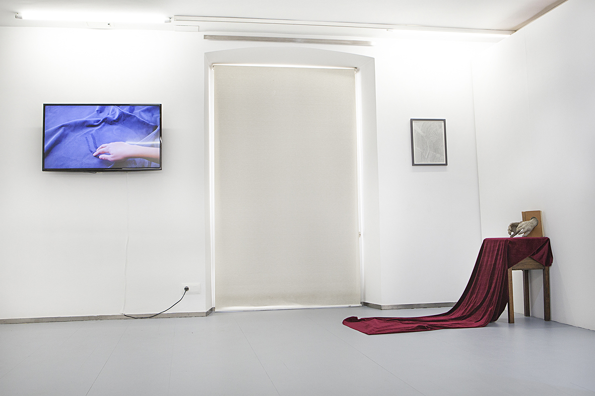 Being engaged in a ceaseless process of negotiation and construction, the body is seen today as something which needs to be permanently invented and reinvented through strategies of self–projection, identification, rejection, adaptation, empathy, in a plural and fluid matter. The exhibition Blood, Stop, Space, Gold questions the topics of embodiment, appearance and touching through the four artistic discourses selected here.